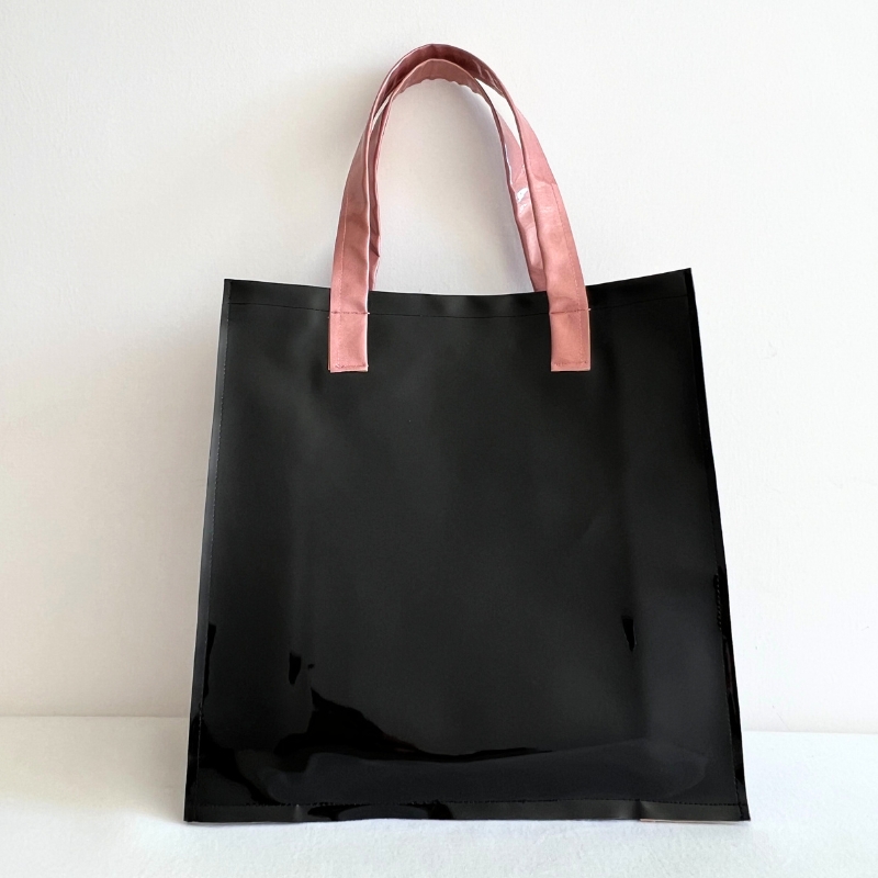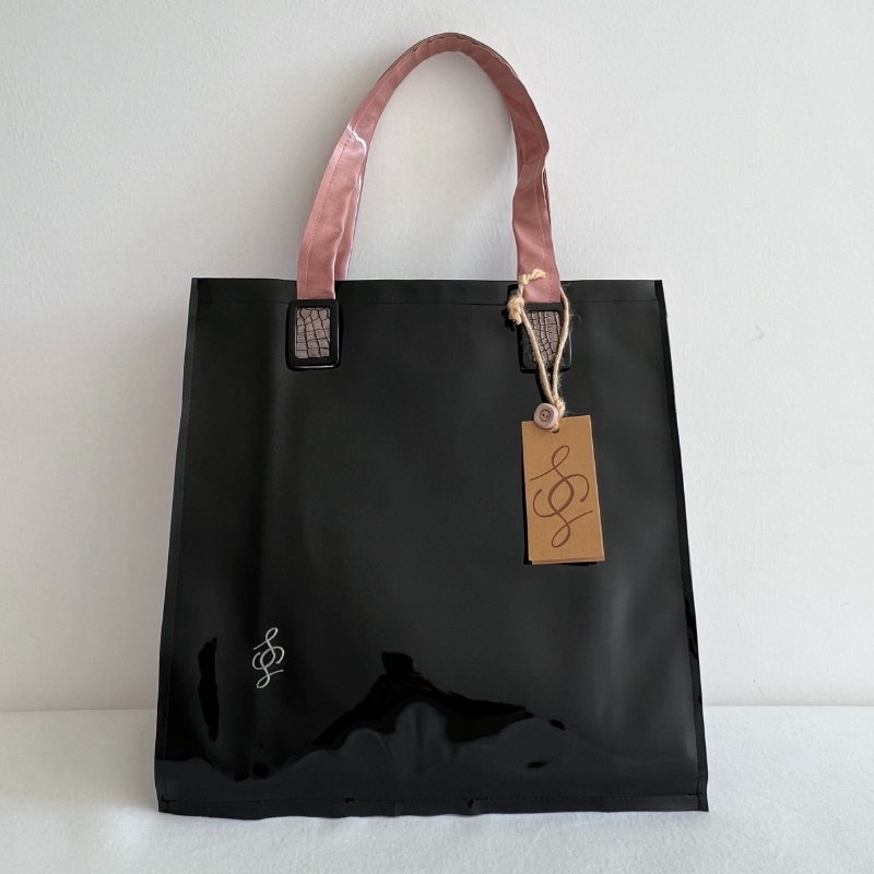 Borsa shop nero lucido con manico rosa