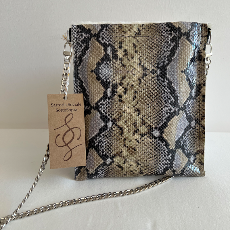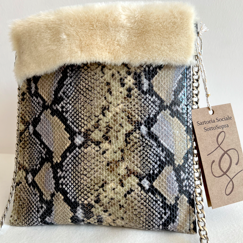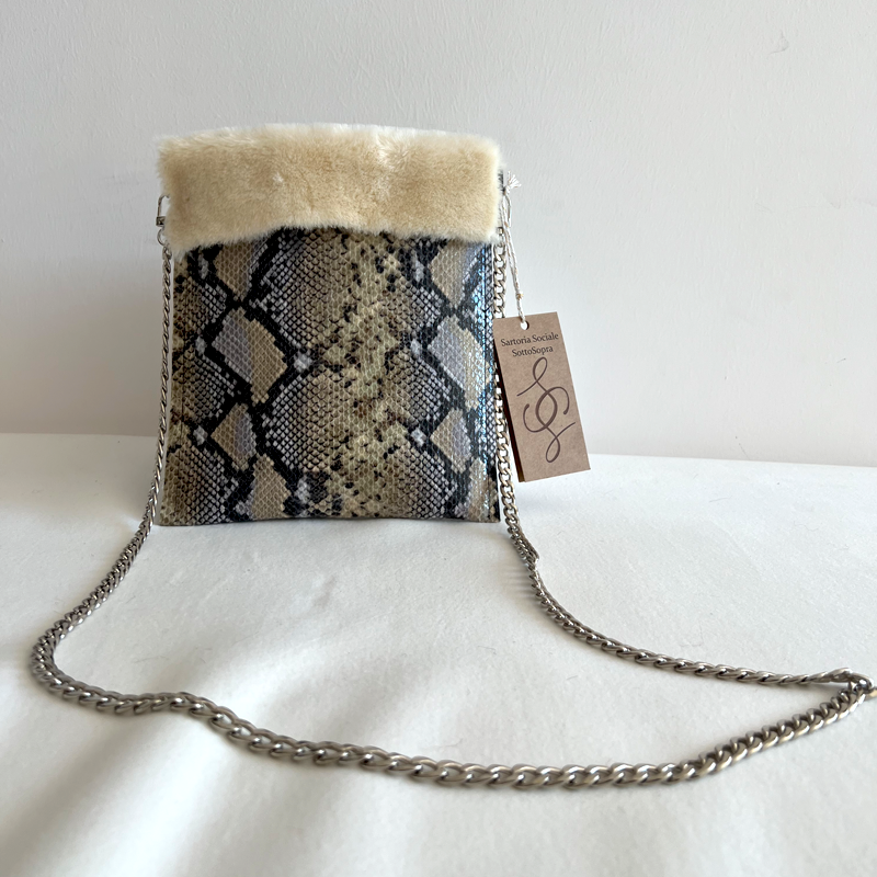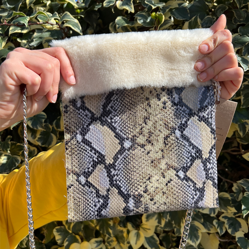 Pochette con tracolla realizzata in ecopelle e pelliccia ecosostenibile
