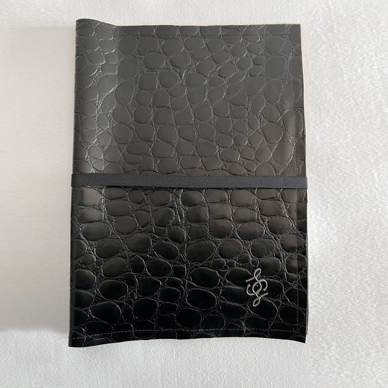 Portadocumenti effetto coccodrillo realizzato in ecopelle nera e interno in vela